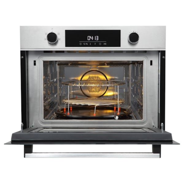 Multifunctionele oven met magnetronfunctie, inhoud 43 liter, snel opwarmen, geïntegreerde recepten, indrukbare bedieningsknoppen, automatisch temperatuurvoorstel, elektronische temperatuurregeling, restwarmte-indicatie, 2 bakniveaus en halogeen verlichting.Bekijk ook de merkspecifieke functies