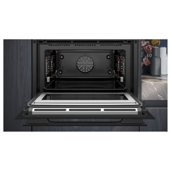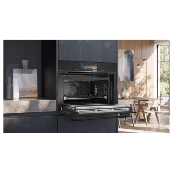 Multifunctionele oven met magnetronfunctie IQ700, inhoud 45 liter, 15 verwarmingssystemen, 5 vermogensinstellingen magnetron, snel voorverwarmen, Home Connect, touchControl bediening, roastingSensor Plus, bakingSensor Plus, pyrolytisch reinigingsysteem, kerntemperatuurmeter en LED verlichting.Bekijk ook de merkspecifieke functies
